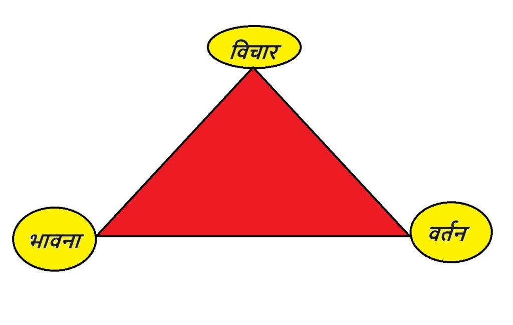 वरील उदाहरणातून तुमच्या हे लक्षात आलं असेल की जरी घडलेली घटना एकच असली तरी त्या घटनेवर केलेल्या विचारांमुळे प्रत्येकाची भावना आणि वर्तन बदलते. म्हणजे अ, ब आणि क यांच्या भावनांची तीव्रता जास्त आहे तर ड व्यक्तीला जरी ही परिस्थिति फारशी पटली नसली तरीही त्याच्या भावनांची तीव्रता त्यामानाने कमी असल्यामुळे त्याचे वर्तन संतुलित होते. म्हणूनच जर आपण स्वतःला आपल्या विचारांचे मूल्यमापन करायची सवय लाऊन घेतली तर आपल्याला आपल्या भावना आणि वर्तन यांचा सुयोग्य समतोल साधता येऊ शकतो. म्हणजे कोणत्याही कठीण परिस्थितीत आपल्याला आपल्या त्रासदायक भावनांची तीव्रता कमी करून कृतिशील राहणे शक्य होईल. चला तर मग, विचार-भावना आणि वर्तनाच्या या त्रिकूटाशी मैत्री करूया का??